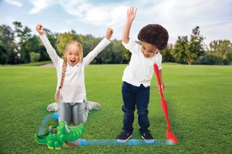 Ο Γκολφάκιας Κροκοδειλάκιας πεινάει και είναι έτοιμος να σου μάθει γκολφ! Πάρε το μπαστούνι και τάισε τον, ρίχνοντας την μπάλα στο στόμα του. Κοίτα! Θα στείλει την μπάλα πίσω σε εσένα με την ουρά του! Ο πρώτος παίκτης που θα σκοράρει 3 πόντους, κερδίζει! Τα ενσωματωμένα πουλάκια στην πλάτη του Κροκοδειλάκια βοηθούν στην καταμέτρηση των πόντων.