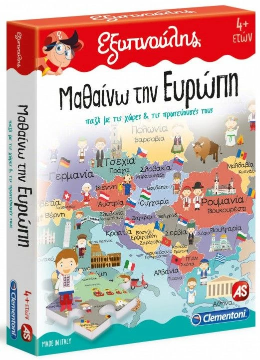 Με το παιχνίδι του Εξυπνούλη Μαθαίνω την Ευρώπη τα παιδιά ανακαλύπτουν και μαθαίνουν τις χώρες της Ευρώπης, παίζοντας και ενώνοντας τα κομμάτια του παζλ. Ταυτόχρονα απομνημονεύουν τη γεωγραφική θέση κάθε χώρας ενώ μαθαίνουν τα ονόματα των πρωτευουσών και των μεγαλύτερων πόλεών τους. Το παιδί ερευνά και συνδυάζει πληροφορίες και μέσα από την ενασχόλησή του αναπτύσσει την παρατηρητικότητα και τη λογική του σκέψη. Αποτελεί ένα πολύ χρήσιμο εκπαιδευτικό βοήθημα για όλα τα παιδιά!