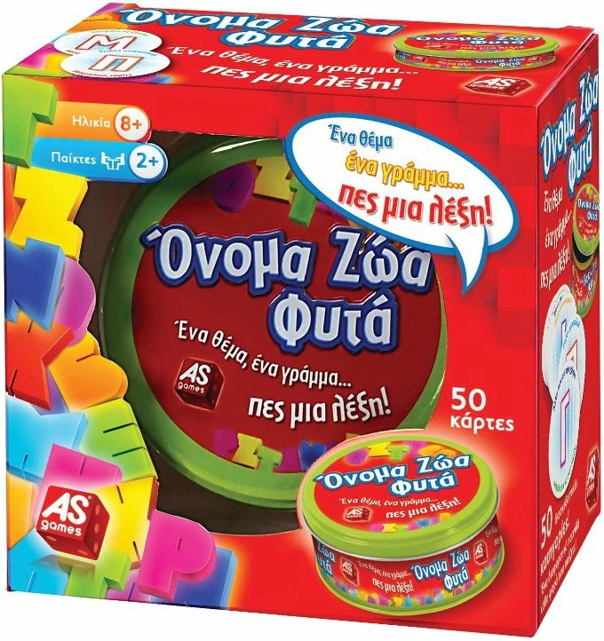 Επιτραπέζιο με κάρτες Όνομα,Ζώα,Φυτά. Το γνωστό παιχνίδι τώρα και σε έκδοση card game για να το έχεις παντού μαζί σου.
