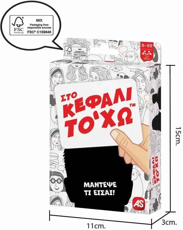 Όλοι γνωρίζουν τι είσαι εκτός από εσένα! Είσαι διάσημος, ταινία ή αντικείμενο; Κάνε έξυπνες ερωτήσεις για να βρεις τι κρύβεται στην κάρτα που κρατάς στο κεφάλι σου. Συγκέντρωσε πρώτος 5 πόντους και κέρδισε! Αριθμός Παικτών: 2+ Καταλληλότητα Ηλικίας: 8-99 Χρονών Το παιχνίδι περιλαμβάνει – 60 κάρτες με 120 θέματα – 1 καρτέλα σκορ (επαναχρησιμοποιείται) – 1 μαρκαδοράκι με σβηστήρα – Φυλλάδιο οδηγιών