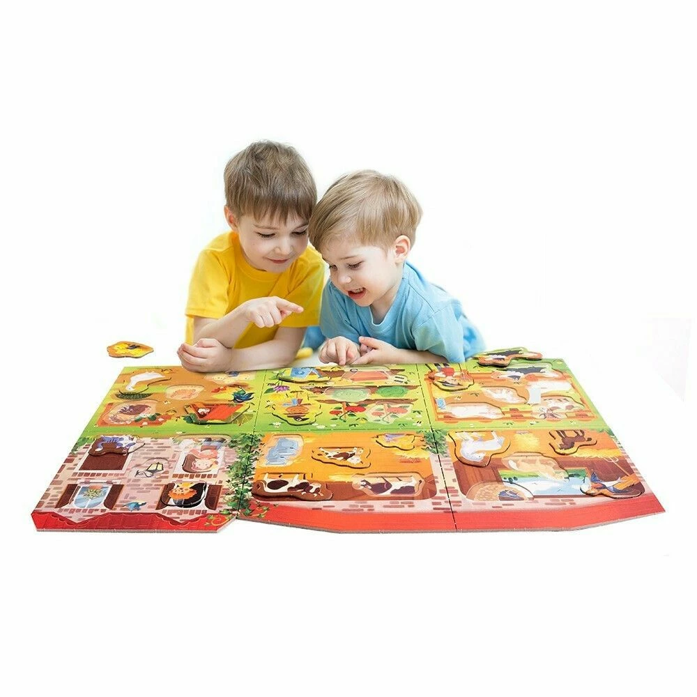 Τα παιδιά βοηθούν τον κτηνοτρόφο να ξαναφέρει τα ζωάκια κοντά στις μητέρες τους, πριν φτάσει ο λύκος! Παίζοντας και διασκεδάζοντας, αναπτύσσουν τη λογική και τον συντονισμό, αλλά και την περιέργεια, την κοινωνικότητα και το πνεύμα συνεργασίας.