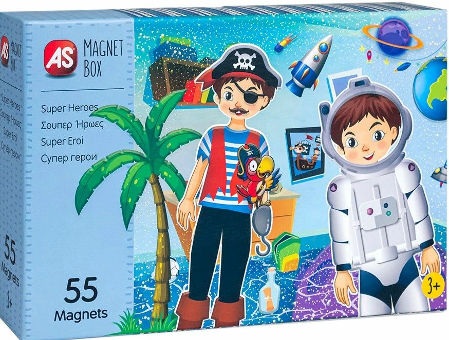 Magnet Box- Σούπερ Ήρωες Μαγνητικό παιχνίδι με 55 μαγνήτες όπου τα παιδιά έχουν την δυνατότητα να συνδιάσουν τα κομμάτια με στόχο να σχηματίσουν τους ήρωες τους.
