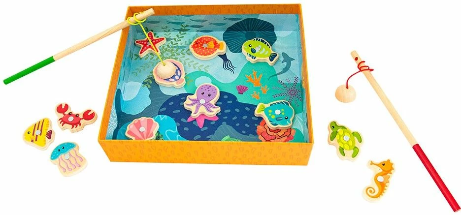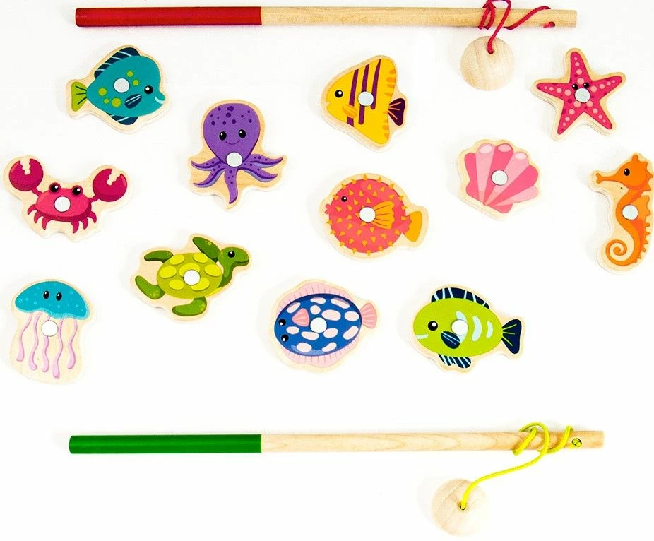 Προσπαθήστε με ένα από τα καλάμια να πιάσετε όσα περισσότερα θαλλάσια ζώα μπορείτε. Ένα διασκεδαστικό παιχνίδι πού εξασκεί την παρατηρητικότητα και το συντονισμό χεριού – ματιού. Περιέχει 12 μαγνήτες.
