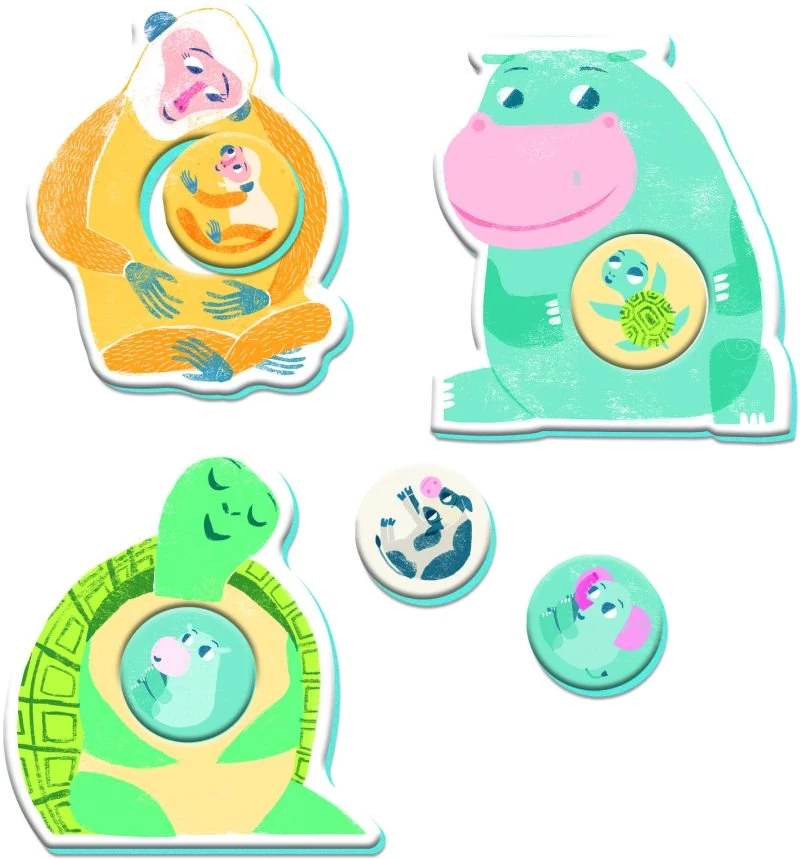 Ένας κόσμος γλυκύτητας για να ανακαλύψει το παιδί τα συναισθήματα και να αναπτύξει την παρατηρητικότητα και την ικανότητα της σύνδεσης. Το παιδί τοποθετεί το κουτάβι στην αγκαλιά της μαμάς του. Διασκεδάζει και αναπτύσσει τη φαντασία του, δημιουργώντας νέα ζευγάρια μαμάδων και μικρών.