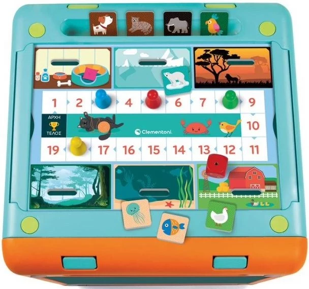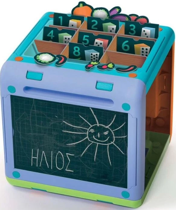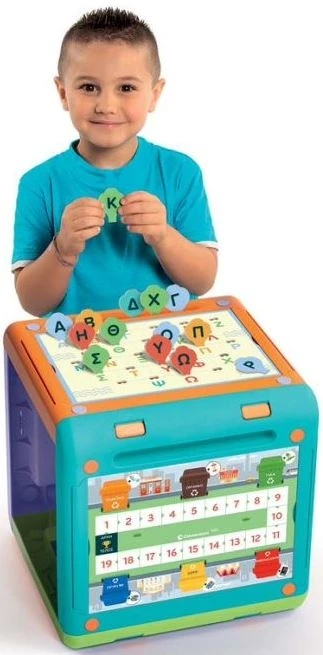 Ένας πρωτότυπος κύβος δραστηριότητας από ανακυκλωμένο πλαστικό και χαρτόνι, με 4 διαφορετικές επιφάνειες παιχνιδιού και υλικό για πολλά εκπαιδευτικά παιχνίδια. Το παιδί θα μάθει παίζοντας τα πάντα για γράμματα, αριθμούς, ζώα, σχήματα και χρώματα, διασκεδάζοντας με δραστηριότητες που σχετίζονται με την οικολογία και την ανακύκλωση σύμφωνα με τη φιλοσοφία των προϊόντων Play For Future.