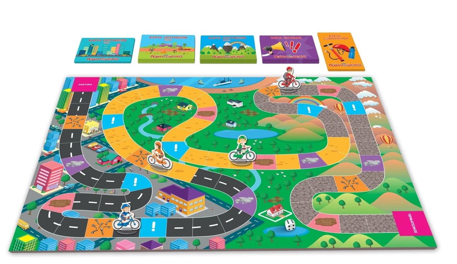 Οι Ποδηλατοδρομίες είναι ένα επιτραπέζιο παιχνίδι συνδυασμού ταχύτητας και γνώσεων που ψυχαγωγεί τα παιδιά ενώ παράλληλα προσφέρει χρήσιμες πληροφορίες για την ποδηλασία και τον φυσικό τρόπο ζωής.