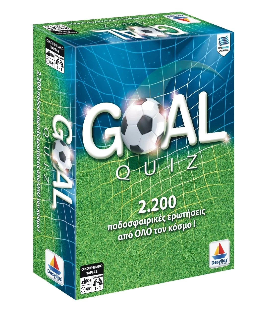 Επιτραπέζιο Δεσύλλας Goal Quiz! Διοργανώσεις: Μουντιάλ, Ευρωπαϊκό Πρωτάθλημα, Τσάμπιονς Λιγκ, Γιουρόπα Λιγκ, Κύπελο Κυπελλούχων, Σούπερ Καπ ευρώπης, Κύπελο Συνομοσπονδιών, Κούπα Αμέρικα, Κόπα Άφρικα + Κύπελο Ασίας, Γκολντ Καπ, Κόπα Λιμπερταδόρες, Διηπειρωτικό Κύπελλο, Παγκόσμιο Κύπελλο Συλλόγων. Απαντήστε σωστά στις ερωτήσεις, δώσε πάσα και… ετοιμάσου για γκολ. Πρόσεχε όμως γιατί πονταρίσματα, σφυρίγματα…