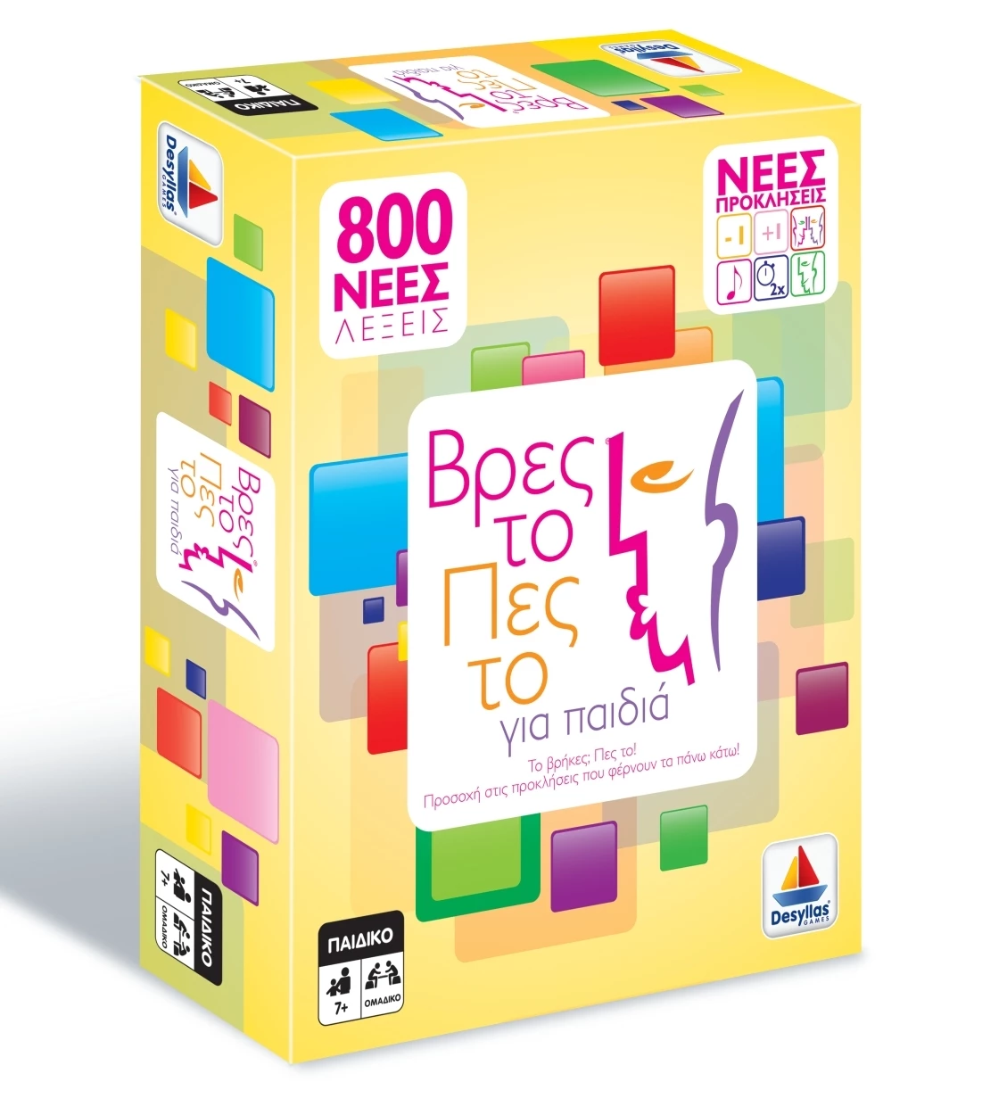 Επιτραπέζιο Δεσύλλας Βρες το Πες το για παιδιά. Παιχνίδι ευστροφίας, ευγλωττίας, αντίληψης και καλής παρέας, με 2400 και 800 θέματα αντίστοιχα. Περιέγραψε τη λέξη στην ομάδα σου, χωρίς να πεις τις απαγορευμένες λέξεις.