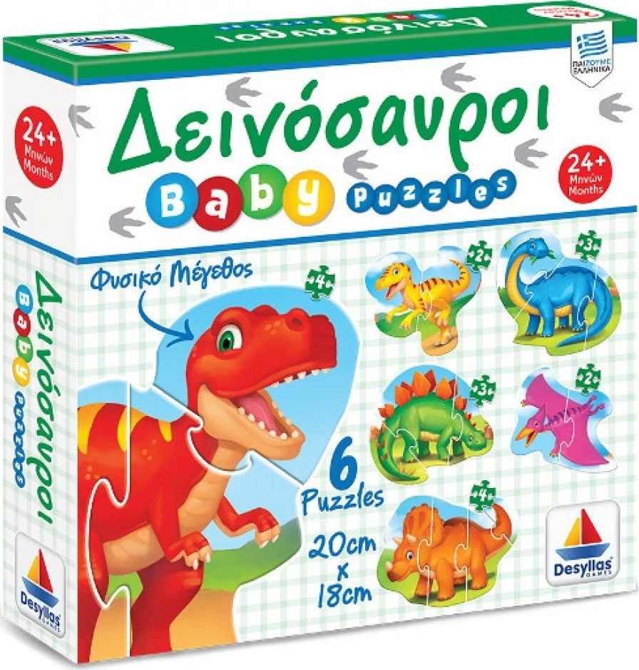 Επιτραπέζιο Δεσύλλας Baby Puzzle Δεινόσαυροι Παιδικό puzzle με το οποίο μπορείς να δημιουργήσεις 6 διαφορετικά puzzle 20×18 εκ με τους αγαπημένους δεινόσαυρους των παιδιών