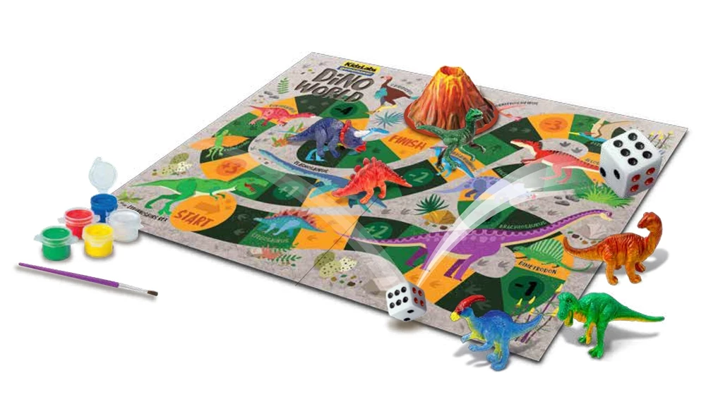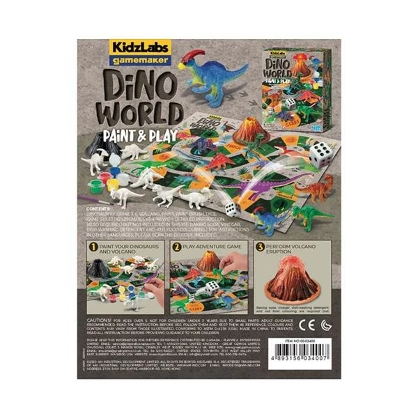 Ζωντάνεψε τους δεινόσαυρους με τα χρώματα και καθοδήγησε τους με ασφάλεια στον επικίνδυνο κόσμο τους! Χρωμάτισε και παίξε με τους 6 δεινόσαυρους και το ηφαίστειο. Παίξε το επιτραπέζιο παιχνίδι περιπέτειας και προκάλεσε ηφαιστειακή έκρηξη!