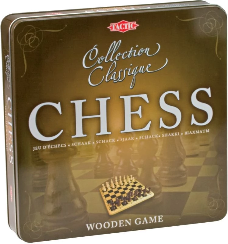 Premium ξύλινο σκάκι σε μεταλλικό κουτί για εύκολη αποθήκευση.