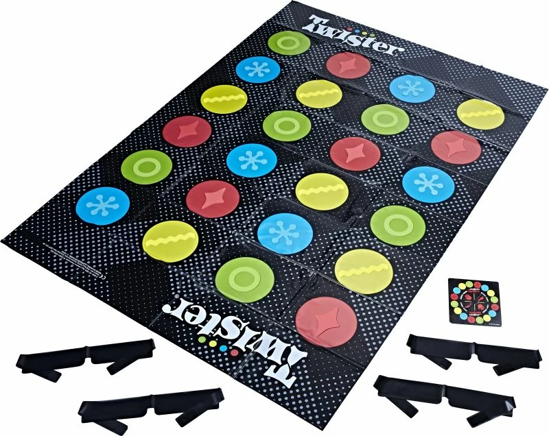 Ζήσε μοναδικές στιγμές με το νέο Twister. Θα πρέπει να έχεις δεμένα τα μάτια και να προσπαθείς να κινηθείς πάνω στο χαλάκι και να ψηλαφίσεις τα ανάγλυφα σχήματα για να βρεις το σωστό σημείο! Ετοιμάσου να ζήσεις με τη παρέα σου μοναδικές στιγμές γέλιου και διασκέδασης!Περιλαμβάνει: χαλάκι, 24 αυτοκόλλητα με σχήματα, ταμπλό σβούρας με βέλος και βάση, 4 καλύμματα για τα μάτια και 4 αυτοκόλλητα στερέωσης καλυμμάτων.