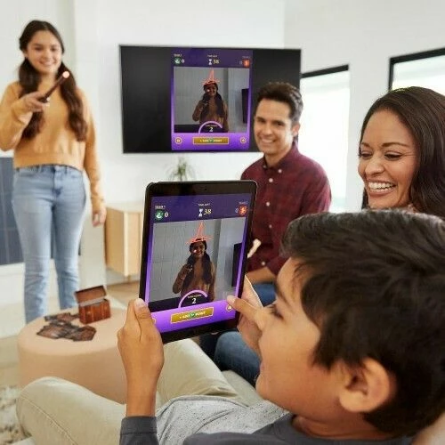 Ζωγραφίστε στον αέρα και δείτε το στην οθόνη σε αυτό το μαγεμένο παιχνίδι που θα ενθουσιάσει τις Μάγισσες, τους Μάγους και τους Μαγκλ! Κάθε ομάδα επιλέγει σε ποιο σπίτι του Χόγκουαρτς θα παίξει (Γκρίφιντορ, Χάφλεπαφ, Σλίθεριν ή Ράβενκλοου). Ανοίξτε το κουτί του συλλέκτη για να ανακαλύψετε ένα στυλό Pictionary Air σε σχήμα του διάσημου ραβδιού του Χάρι Πότερ, μια θήκη για κάρτες εμπνευσμένη από τον κορμό του Χάρι και 112 κάρτες διπλής όψης με στοιχεία εμπνευσμένα από τον κόσμο των Μάγων Κατεβάστε τη δωρεάν εφαρμογή Pictionary Air στο smartphone ή το tablet σας για να ξεκινήσετε. Στρέψτε την κάμερα εντός εφαρμογής στον εικονογράφο και θα εμφανιστούν, μαζί με το σκίτσο τους, στην οθόνη της έξυπνης συσκευής σας. Για ένα ακόμα πιο μαγικό παιχνίδι, οι παίκτες μπορούν να μεταδώσουν τα σχέδιά τους από την έξυπνη συσκευή τους στην τηλεόρασή τους χρησιμοποιώντας Apple TV, Chromecast ή μια παρόμοια συσκευή ροής.