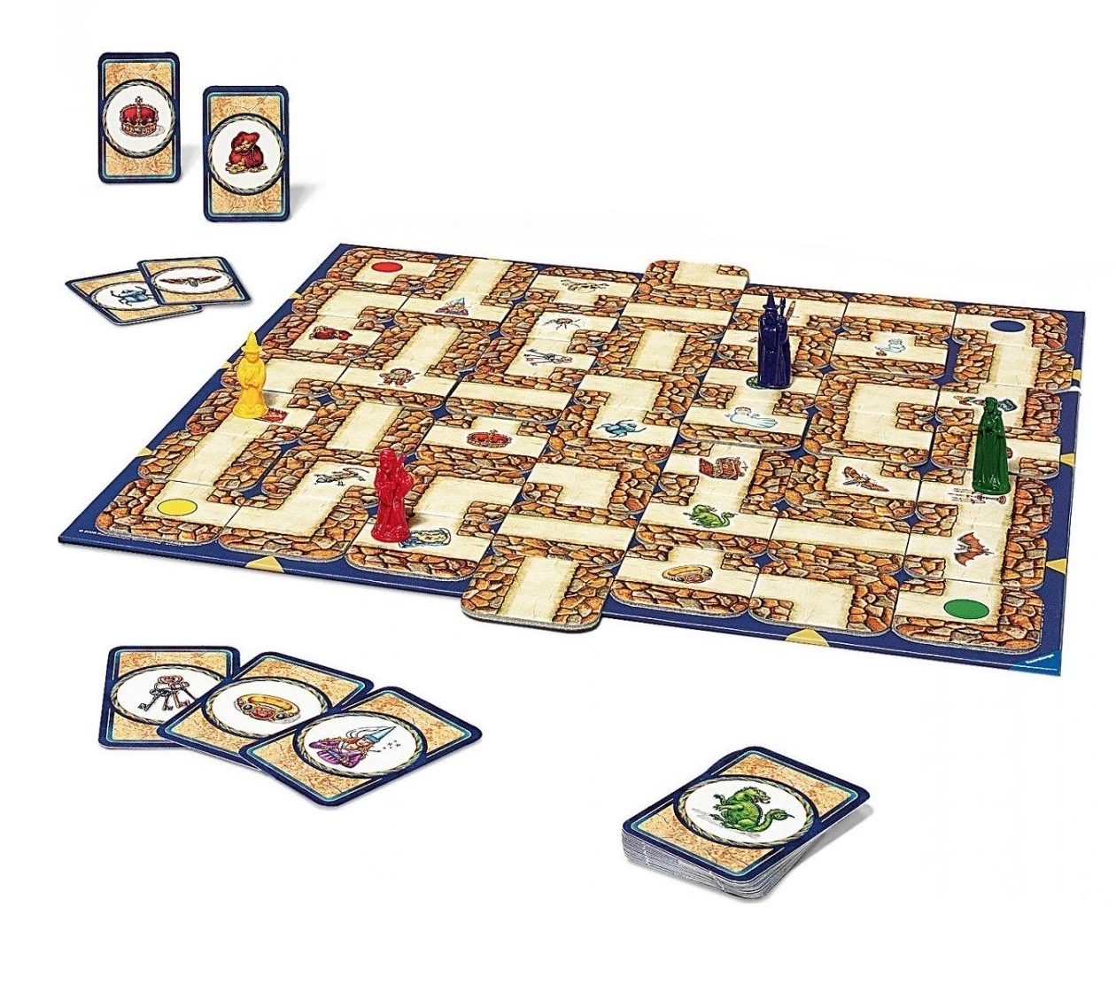 Περιεχόμενα:1 ταμπλό, 34 κάρτες λαβύρινθου, 24 κάρτες θησαυρού, 4 φιγούρες.