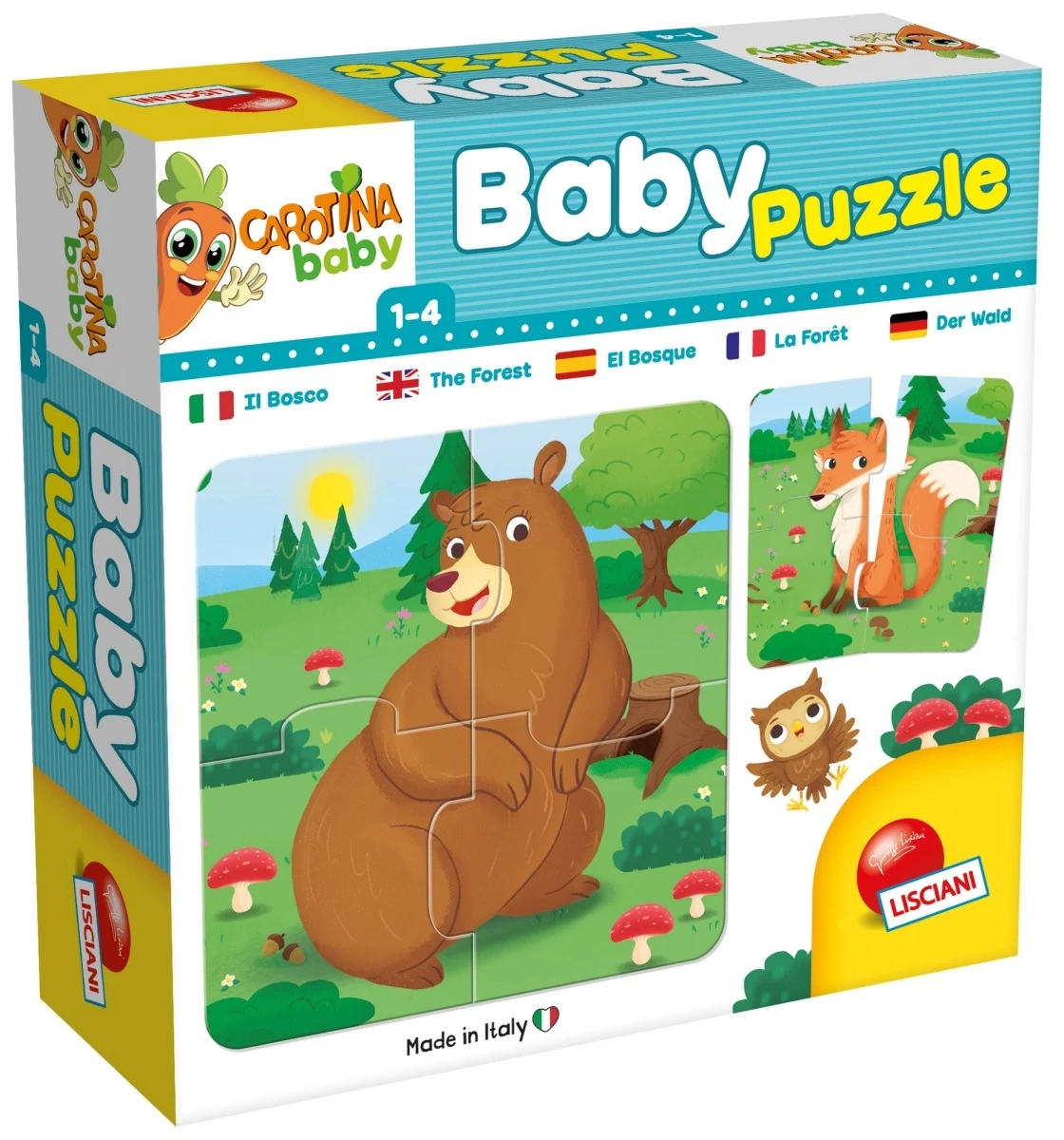 Επιτραπέζιο Carotina Baby Puzzle Il Bosco Λεπτές χειροκίνητες δεξιότητες και συντονισμός των ματιών, χέρι, δημιουργικότητα και φαντασία, περιέργεια και δεξιότητες παρατήρησης, αποκωδικοποίηση εικόνων