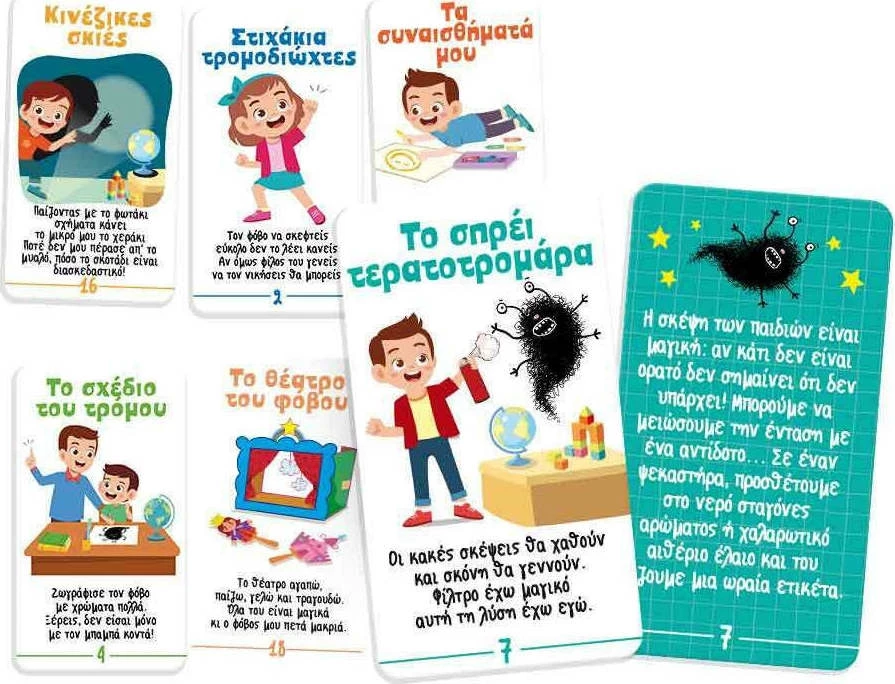 Περιέχει πολλές κάρτες για να βοηθήσουν τα μικρά παιδιά να ξεπεράσουν τους φόβους τους. Πολλές ψυχολογικά στοχευμένες δραστηριότητες για την παροχή στοχευμένης βοήθειας σε γονείς, που αντιμετωπίζουν παιδιά με φοβίες.